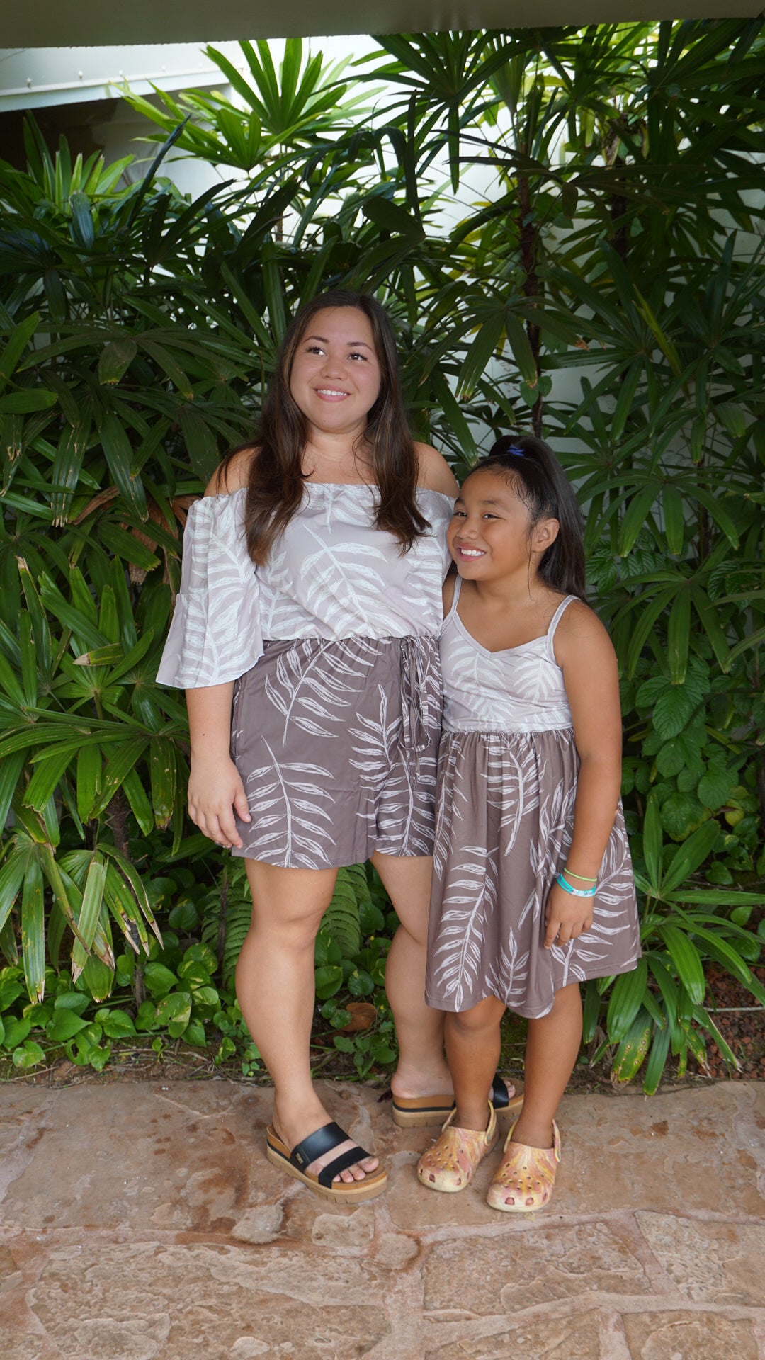 Off-shoulder romper with tie-front waist, side pockets, and short length. Lightweight 96% polyester / 4% spandex blend offers breathable comfort with a touch of stretch. Shadow Fern print adds a tropical yet refined look, making this piece perfect for casual outings, beach trips, and vacation wear.